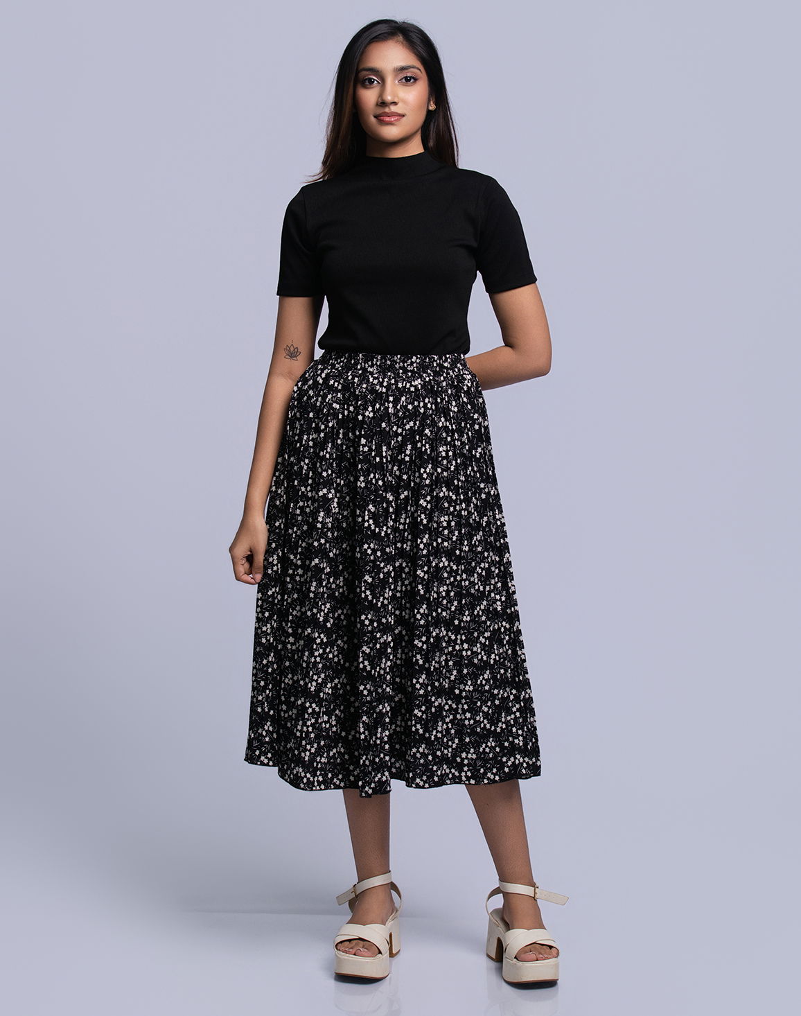 NOLIMIT Women's Mid Length Pleated Casual Skirt Black
